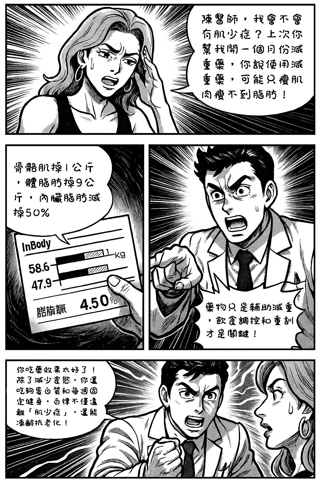 「陳醫師,我會不會有肌少症!上次請你幫我開一個月份減重藥,但你說過使用減重藥,可能只瘦到肌肉卻瘦不到脂肪!」